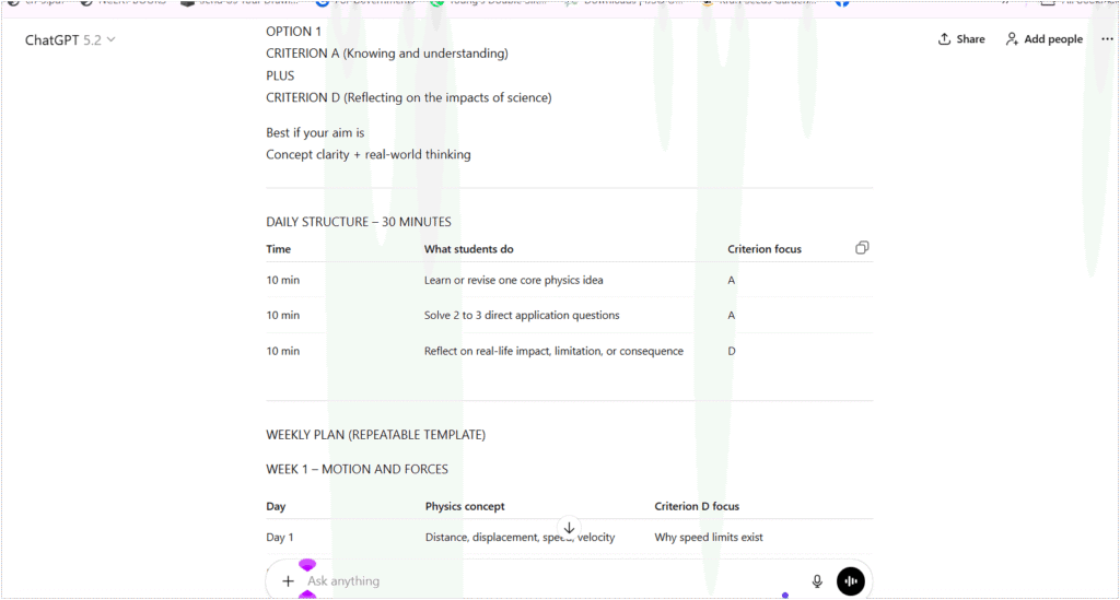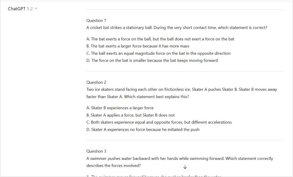 - The Co-Creator Way: “Act as an IB Physics Examiner. Create 5 application-based scenarios. Provide common student misconceptions as the ‘distractor’ answers.”